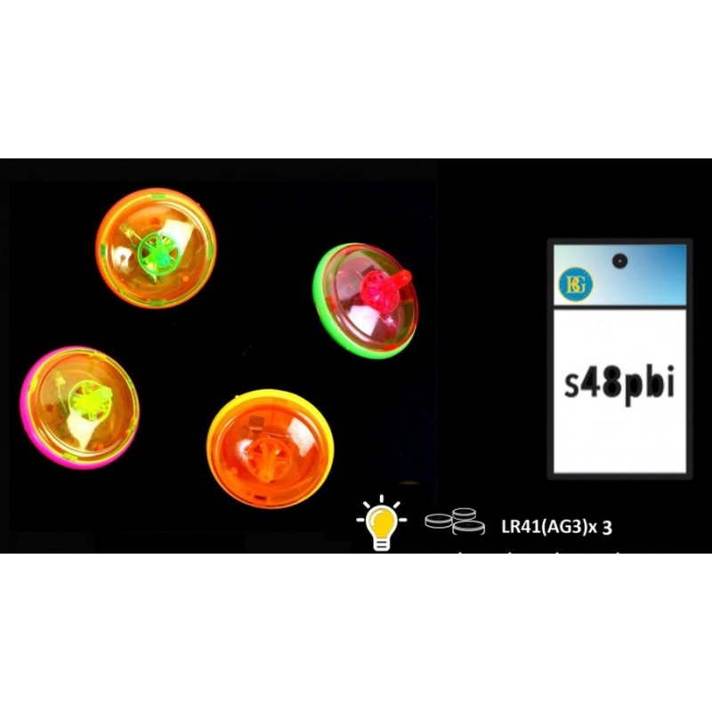 Toupie lumineuse dimension 4.5 cm. Piles incluses.